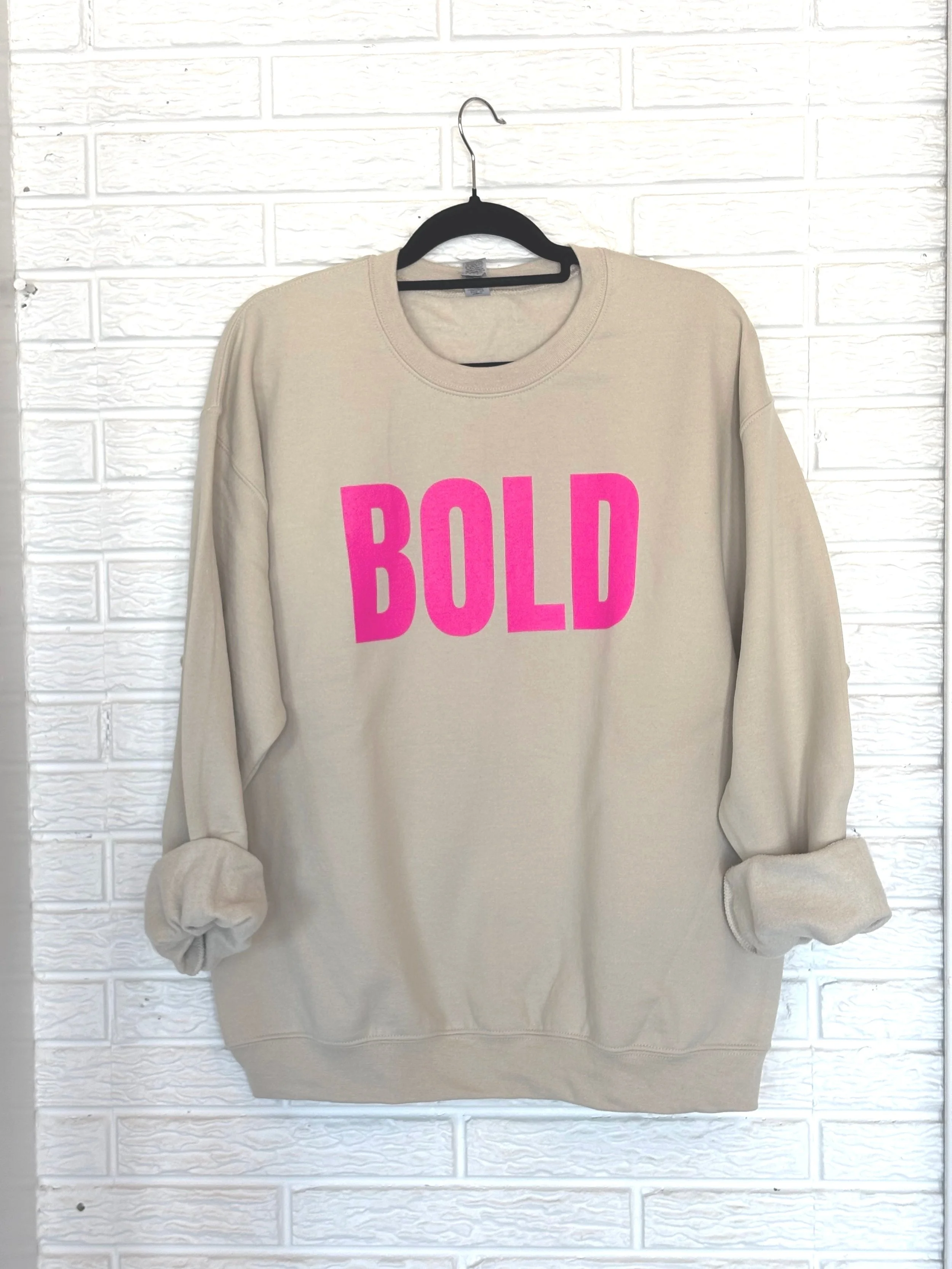 Remembering what you’re made of is an inside job. But reminding yourself who you’re becoming when you look in the mirror with this signature BOLD cozy sweatshirt in sand, is a declaration to yourself and those around you that you are made for so much more. It’s not a time to shrink back. It’s a season of becoming BOLD.